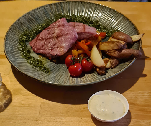 Read moreEen parel op West-Terschelling. DE ZEE heeft een wekelijks wisselende menukaart. Waar vind je dat nog? Met ons gezelschap van 6 personen zaten we op een vrijdagavond, op een knusse plek in dit kleinschalige, intieme restaurant. We hadden 3 van de 4 te kiezen entrees: een Carne crudo met rucola en parmezaanse kaas, een aardappelsalade met witte asperge en gerookte paling, en één vegetarisch gerecht: Salade van gepofte bietjes met jonge Terschellinger schapenkaas van boerderij "Halfweg". Als hoofdgerecht 3x de signatuur van DE ZEE: heerlijke Zeebaars met venkel en trostomaten. 2x hadden we de Runderbavette met rode wijn-jus, waarbij onder andere smakelijke, groene asperges werden gereserveerd. Eén persoon heeft genoten van de geroosterde bloemkool met boter bonen en gremolata. Een top Vega gerecht! Hierbij hadden we nog Roseval aardappeltjes uit de Italiaanse houtoven, waar veel in wordt klaar gemaakt. Met ons zessen hebben we eensgezind gekozen voor hetzelfde dessert: Panna Cotta met verse aardbeien. Behalve dat het eten top was en waarbij geluisterd werd naar persoonlijke wensen - bijvoorbeeld de standaard 'medium rare' Bavette wat extra gaar te maken - is de ambiance geweldig. Heel vriendelijke en attente meiden in de bediening. Team DE ZEE: Namens de familie Jager, bedankt voor de prettige ontvangst en als ik weer eens naar Terschelling kom, dan wil ik zeker weten weer eten...