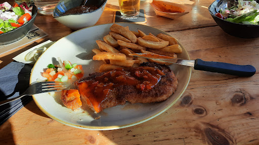 Prettige sfeer. Lekker eten. Een gerecht dat we hadden besteld viel anders uit dan verwacht, en hier werd prettig mee omgegaan. Met het gerecht (mixed grill) was overigens niets mis. Kindermenu was met leuk onverwacht verrasinkje. Schnitzel met zigeunermuziek was lekker. Kogelbiefstuk was ook goed en royaal. Mooie salade er bij, Dressing naar eigen inzicht. Ook schaaltje rabarber er bij, ik vond dat wel weer eens lekker anders.