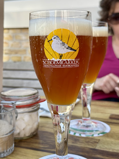 Op een half regenachtige woensdag besloten we (4 volwassenen) rond lunchtijd om naar binnen te gaan in het Raadhuis op West Terschelling. 'N prachtige zaak, alle tafels waren bezet en we besloten daarom aan de bar plaats te nemen: een prima plek!