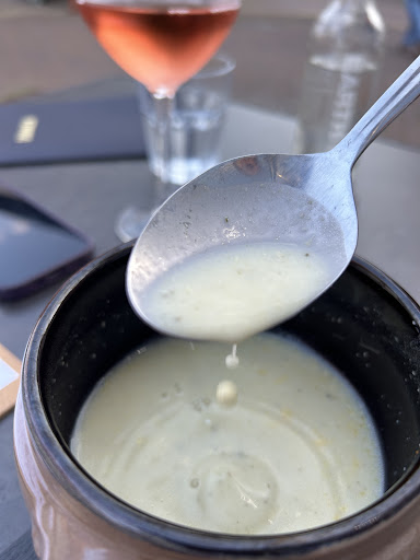 Read moreWat een fantastisch restaurant. Bij toeval langs gelopen. Nog vroeg en geen tafel bezet. Toch maar naar binnen. Hele heldere kaart. Je denkt dan eerst: weinig keus. Maar als je dan v, v of v hebt gekozen krijg je een uitgebreid voorgerecht met verschillende overheerlijke lekkernijen voorgeschoteld op een plankje. Met een subliem soepje, zeer smaakvolle gerookte vis en vooral een magnifieke lamsham. Aan alles merk je dat dit een serieus goede keuken is. Het broodje erbij en de olijfolie zijn op zich al om je vingers bij af te kijken. (Dat moest ook wel want er was geen servet ;-). En dan het hoofdgerecht. Vis op de huid gebakken met precies de goede structuur en smaakverdeling (de limoen komt heel goed uit). De gebakken groenten erbij ook met precies de goeie bite. Ook aan de meegeserveerde salade merk je dat op alle details wordt gelet. En de porties zijn zeker niet bescheiden. Normaal gesproken begin ik met een paar frietjes met mayonaise. Nu heb ik ze niet eens aangeraakt. Even gewacht met het dessert zelfs. En ook dat was weer volop smullen. De crumble was weergaloos. En niet te zuinig. Op de achtergrond hoor en ruik je vooral de bereiding van de koffie. Bij die geur alleen al weet je: zalig bakkie. Niet te zuur, niet te bitter, niet te zacht. Echt heerlijk genoten. Wat een geweldig restaurant. Van harte aanbevolen. Echt een restaurant waar je weer tot besef komt hoe lekker eten kan zijn. Geen 13 in een dozijn. Echt subliem. Ik hoor net dat ze nog maar 2 weken open zijn. Dus het...