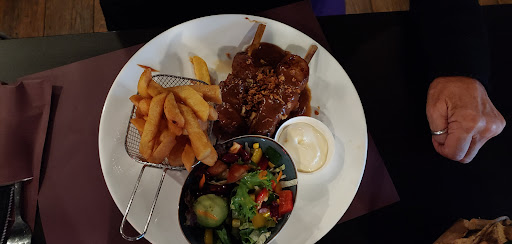 Dan het eten. Onze 3 kinderen zijn dol op schnitzel, maar twee van de geserveerde exemplaren waren nog grotendeels wit aan de buitenkant. Ons verzoek of ze nog even in de pan konden, werd gehonoreerd. De eigenaar hing een vaag verhaal op dat het eigenlijk best kan, omdat ze maar aan 1 kant echt gebakken worden om droogbakken te voorkomen (??). Ook bleek dat de schnitzels kant en klaar zijn want paneren kost teveel tijd (???) Dan heb je het over een snack, niet over een gerecht van 18 euro. Uiteindelijk hebben de kinderen nieuwe schnitzels gekregen. Dit duurde ruim een kwartier, dus de rest had het eten al op. Gelukkig zag de eigenaar ook wel in dat het niet kon en zijn ze van de rekening gehaald.