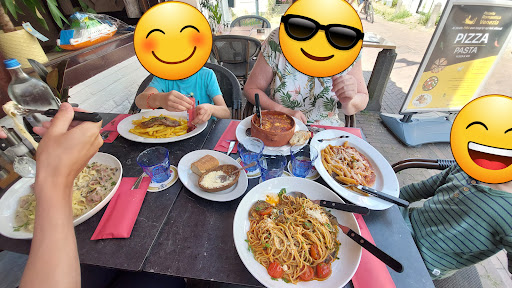 De vriendelijke meiden in de bediening maakte veel van het wachten goed. De gulle porties bruschetta en brood met olijven waren heerlijk. De pizza's smakelijk en eigenlijk iets te groot.