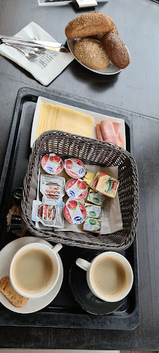 Read moreBad food quality. I found the coffee un-drinkable (tastes like soap), the chocolate croissant and bread are chewy and not enjoyable. The cheesecake and “room taart” don’t have taste. Orange juice was good and fresh. Was a pity to give the whole tray back except for the juice. The price/quality ratio is very...