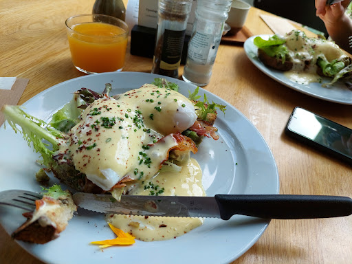 The dish on the picture is their eggs benedict. Tip: their kombucha is homemade...