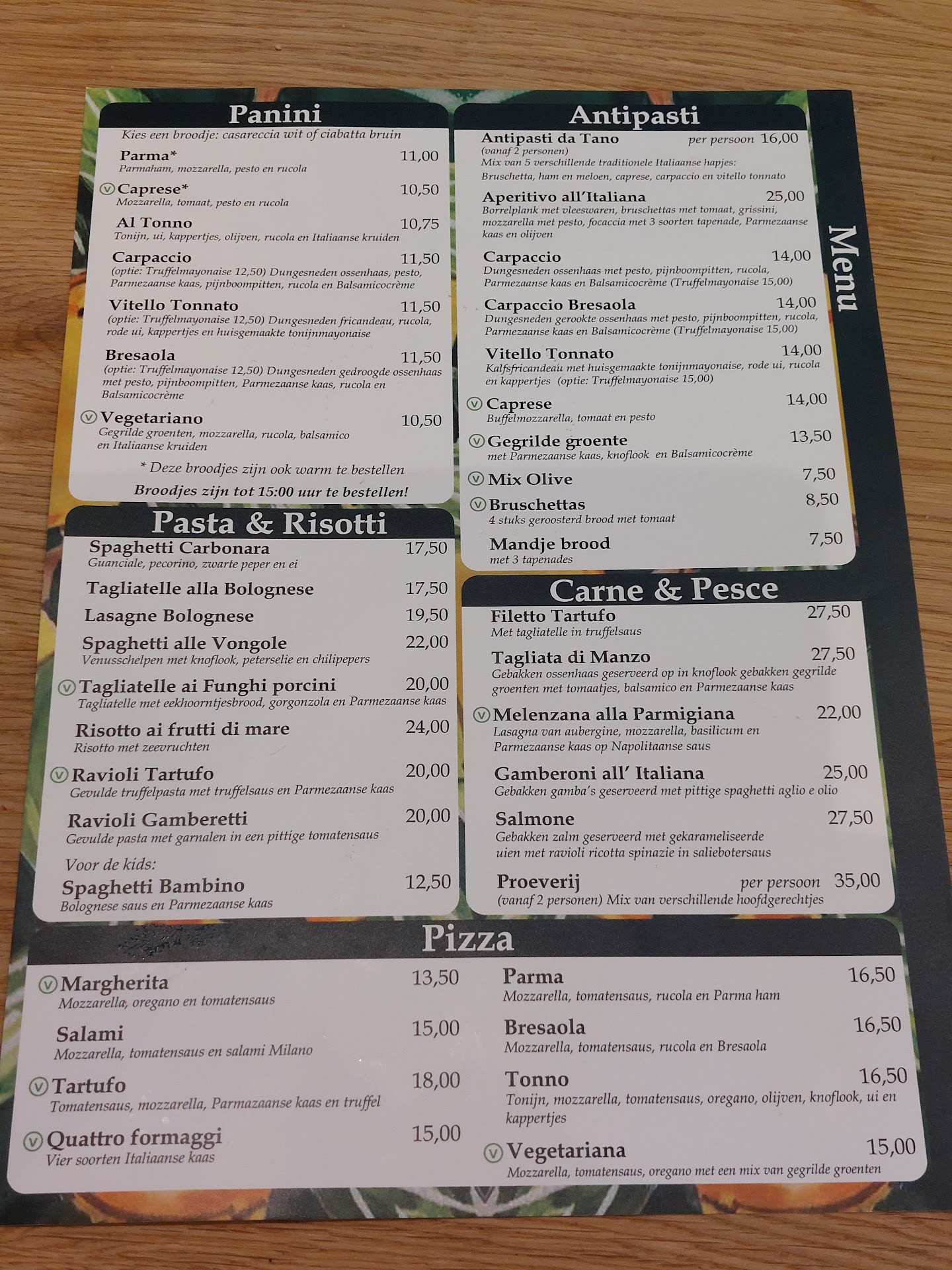 Read moreOp een rustige woensdagavond hebben wij er met 5 personen heel smakelijk gegeten. Een ruim restaurant waar we aan een ovale tafel prima zaten. De vitello tonnato was heel royaal. Als vegetarisch hoofdgerecht viel de melenzana bij een aantal van ons goed in de smaak, evenals de vegetarische pizza die een van ons had. De spaghetti carbonara was verder een ruime portie en vooral een smakelijk gerecht. Een goede tiramisu en koffie completeerde de maaltijd. Gevoegd bij de aardige en attente bediening was het een prima ervaring bij dit restaurant dat wij niet eerder...
