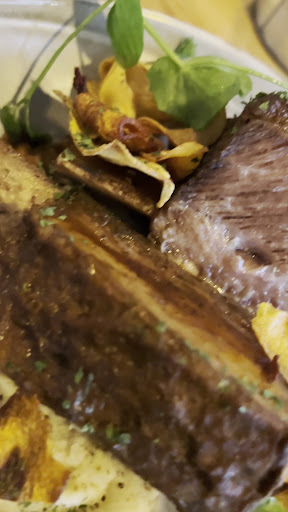 The short rib for the main course was lovely and tender, served with a very tasty jus that complemented it superbly. The combination of root vegetable chips with the potato purée was genius, adding flavor and texture to the potato. The steak of the day was the shoulder steak (diamond haas), which was equally divine. The portion sizes were just right, enough to fill you comfortably without excess.