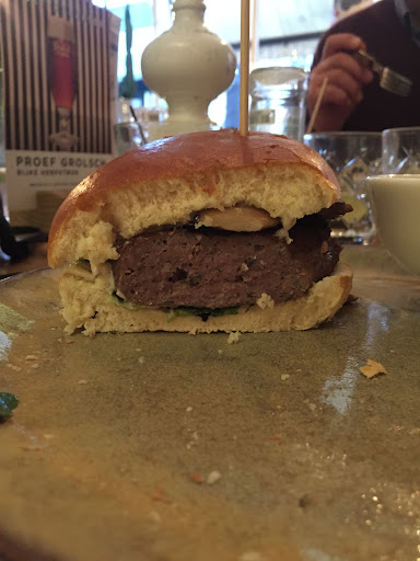 Disappointing, after reading good reviews I decided to have a lunch in Bij Hem. Started with the pumpkin and onion soup, 15 min waiting time, a bit watery and both soups lacked of seasoning. Onion soup comes with melted cheese on a toast. Then we’ve been waiting 50 minutes (!!) for a burger from a special menu , with deer, champignons, grilled veggies and fried potatoes s with rosemary. It’s impossible to taste the venison (if there is any) , frozen meat (mixed, like paté, hardcore well-done, almost like a stone), cold - sweet albert-hijn quality buns (just put them on the grill), a few green leafs, spoon of butter/mayo and 4 slices of champignon for 18€!!!! I really expected something amazing from the special menu and waiting time but it was far away from any standards. Good and friendly staff, nice atmosphere. I’ve seen they have more than a hundred gin-tonic combinations. Maybe this is where all these good reviews come from. Remove this burger from the menu and take care of...