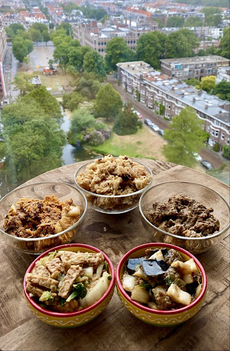 Cons: I would appreciate more smiles, eye contact and better communication from the staff. When I entered, they just confirmed I came to pick up my take out order and it'd be nice if they had also kindly let me know approximately how long I'd need to wait and maybe looked at me and smiled. the price/portion size ratio could be a bit better We (two adults) had two base dishes (rice & noodles) and five "meat" servings of 100 g (they recommend 200 g "meat" servings per person), paid a total of 23.50€ and we weren't very full after the meal. the fried noodles seemed a bit sad in that they were mostly very short, like they had been cut into approximately 5-cm long pieces. I'd prefer them longer and fresher looking. I'd love to see them make some (more) creative vegan desserts. I've had amazing Asian cuisine inspired desserts based on rice and coconut milk, and I'm sure they could come up with something similar. the place is very crammed (including the seating outside). I'd not feel comfortable...