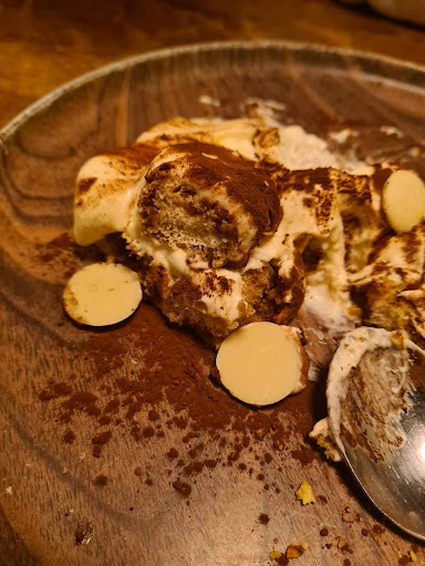 Read moreGood: pizza was delicious & restaurant looks nice Bad: service & ravioli First of all, I noticed at other tables that the waiter would explain the menu and make conversation. Our waiter very nicely threw the menus on the table and left us to decide. Of course, the menu had mistakes in it (see picture). In terms of food, I asked for the mushroom ravioli with truffle, which was horrible. Besides the 3 shavings of truffle that were placed on the ravioli, there was no truffle taste. Only mushroom. The ravioli was well cooked, but the inside just had a very bland taste. Not what you expect given the price for 5 ravioli on the plate. Furthermore, no sauce or anything, just mushroom water covered the ravioli (see picture). There were some mushrooms on the ravioli that were not cooked for long enough, in my opinion, I even think they were canned mushrooms. I ate one ravioli and after I sent the dish back. I told them that I just did not like it, and I thought that was that. But after we were ignored for the rest of the night and our waiter stopped being our waiter. He just kept shooting ugly glances when he passed us. I ordered a pizza after, which was nice, but of course, we had to stop another waiter (as ours simply disappeared) and really insist on being served. Afterwards, we asked for some more drinks which never came. We had to ask another waiter, which finally brought them to us. When we asked to pay, we were brought the bill and told to pay at the bar. We noticed that the rest of the clients could pay at the table by card and were brought some complementary candy (not for us, tho, only the printed bill). Even the person at the bar was confused by why we were asked to pay there. Btw, the tiramisu was super dry, no coffee infusion on the ladyfingers, and the cream was not set, so it was a mess as well (see picture of the dry ladyfinger). Horrible experience, especially on my...