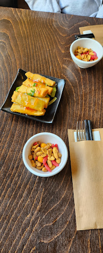 My partner and I wanted something a bit off the beaten track, so after reading good reviews we decided to try this place for dinner. Despite some light foot traffic outside, the restaurant was completely empty, so we had it nice and quiet to ourselves. We ordered 4 items: gyoza varkens met Chinese kool, gyoza bief zwarte peper, gyoza garnaal met vlees, and xioulongbao. All of the food was good, but not amazing. The beef dumplings were probably the highlight because they had a hint of spice to them, but the xioulongbao were not soupy at all, unfortunately. Additionally, it would have been nice to be offered some chili oil or sambal or similar instead of just vinegar and soya. Still the service was excellent, everything was clean and the portions were decent for the price. We...