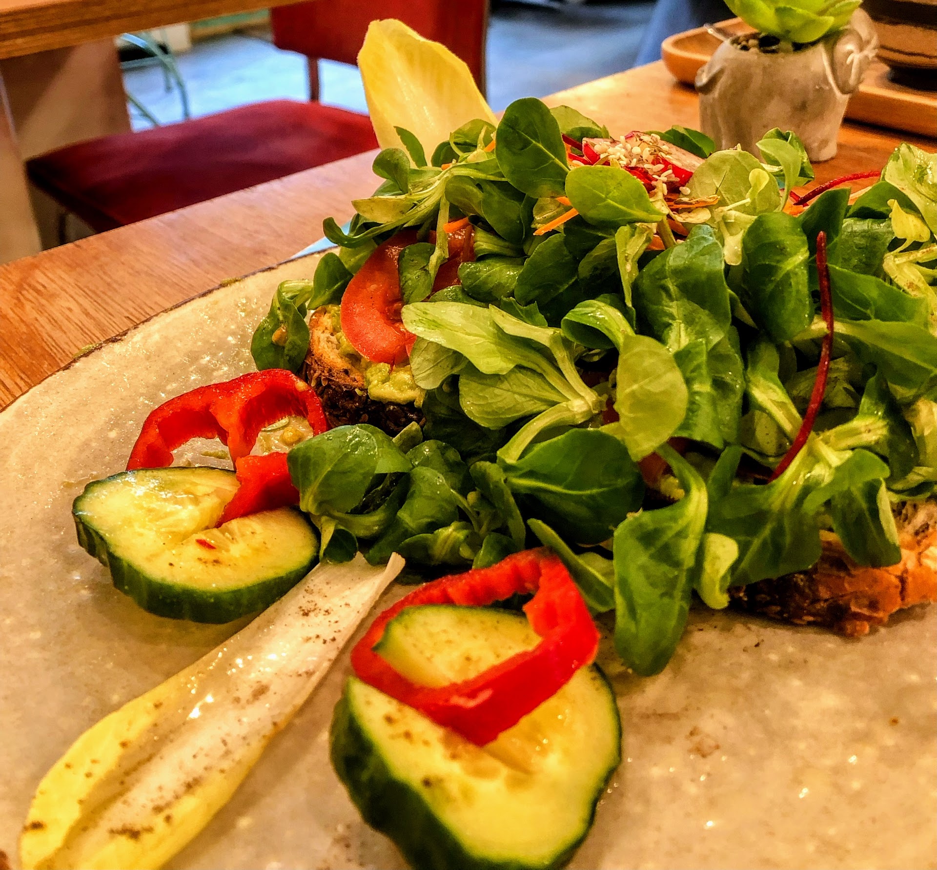 Very lovely vibe cafe with some nice art on the walls and cozy decoration. Friendly warm welcoming staff. I had the grilled bread with smashed avocado (vegan) and latte macchiato with oat milk (side note: no cookie with the coffee). While waiting for my friend I ordered the same portion for her also, she has tomato allergy and the portion had tomato on it, there was no mention about it on the menu (I wish there would have been a list of the main ingredients). Therefore I am mentioning it just in case it's helpful for others. The food was fresh, tasty and nicely presented. I think it would have been even better with the house kimchi extra that I didn't order (which I regret a little bit). Especially when there was no vegan mayo with the portion (the non vegan options seemed to have more sauces). At least there was no misleading information like in some other places that claim to have vegan mayo but when you order it is not available. Still I would be pleasantly surprised if a cafe did have vegan mayo, it would be thoughtful. Personally as an avocado bread fan I would have liked some slices of it on the plate, even though it had smashed avocado it was not much visible underneath the other ingredients. But I could see there was still a lot of thought put on the presentation and added spices so the bread was still highly on the plus side. Someone on a light diet would definitely be happy with this kind of portion. I would definitely recommend this place for people who like a cozy little gem of a place on a side street. Wasn't too busy or packed up like some of the bigger cafes. 5 vegan options on the menu and some...