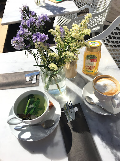As drink I had chai latte (comes automatically with oat milk) and a berry bomb smoothie (as a dessert) - both very good. There's cute little bottles with lids for sugar on the tables - less waste with no single use packaging sugar (a good environmental friendly example for other cafes too). The berry smoothie was exceptionally soft to the mouth - some leave the mouth with a sore feeling afterwards but I guess the banana in it made it easier to handle. A real treat!