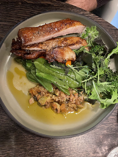 then we waited 45 more minutes and had to ask where our mains were. no one had checked in with us or checked on our meals. and once we had brought it up, the staff's mood chilled noticeably. when our meals did come 10-15 mins after asking, the portions were unfortunately meager and the flavor was lacking.