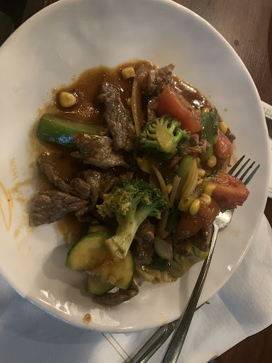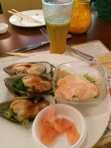 This is fairly large establishment. Chinese owned. At the reception you have to say how long you expect to stay for the all-you-can-eat buffet as that determines the price you have to pay. For alcoholic beverages you need to purchase coins 1 coin = 1 Euro. Atmosphere inside: not really cosy. For the buffet I would say: "Hmmmm..." There is a lot of choice, ranging from starters, to already prepared warm dishes, to food that can be prepared for you (Tepanyaki, Wok), to salads, fruits and desserts. The hot food is rather tasteless, bland, said they forgot to add salt, pepper, spices. The Tepanyaki and Wok dishes, of which you picked the ingredients and brought to the cooks, are probably the best and most tasty option. Desserts: a lot of choices. Tried the Tiramisu and the coconut pudding: the first was watery and rather tasteless, the latter just tasteless. Another smaller pastry however was fine. Then the creme brulée: the instant version, which has nothing to do with a real crême brulee. There are plenty of other choices (cheese cake, brownies, chocolate chip cookies ice cream, fruit, etc. etc.) There is also a coffee machine that serves espresso, cappuccino, caffé lattè, regular coffee). Overall impression is a middle of the road experience, both in food...