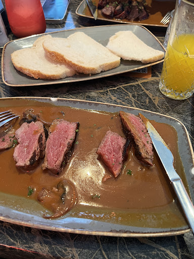 My mother who is extremely allergic to gluten ordered a burger without the bread not even the gluten free one. And you probably guessed it : she was served a burger with the bread around(yeah the one with gluten too..) the burger. I myself was told I wasn't allowed to eat the gratin that came with my steak yet it was there on the plate (cross contamination hello). And this all took over 45 minutes after the starter. Now this is all pretty bad, but when even the waiter admits to have "forgotten to write it down" even though we spokr about it in detail and he even went to the kitchen?! That's unforgivable. That's just to much of a mistake after all the other ones. To add on top of this, after the mistake was made the same waiter asked my mother if she wanted rice with the new burger instead of chips, she said no. Not a minute later another waiter brings her a new burger gluten free with a big bowl of white rice.. Communication nowhere to be find between staff members. My steak was good quality however. Shame they forgot the glass of red we ordered to go with it.