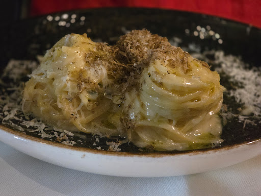 The house special, Tagliolini Al Parmigiano, was spectacular and some of the best pasta we have eaten anywhere in the world. This dish was all about the rich, nutty, umami flavor of the Parmesan, the butter, and the aromatic, earthy truffle.