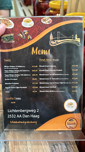 Read moreMerhaba arkadaşlar Bugün Den Haag da bulunan İstanbul Midye ye geldik. Mekan merkezden bira uzak ama ulaşım kolay çok yakınından tramvay geçiyor. Bulmak çok kolay. Mekan küçük şirin çalışanlar güler yüzlü ve misafir perverler. Ben gördüğüm ilgiden çok memnun kaldım. daha önceden baktığım için seçim yapma konusunda çok zorlanmadım. Aradığınız lezzetleri burada bulabilirsiniz. Mesela ne hemen sizlere saymak istiyorum Adana bölgesine ait şırdan mumbar dolması İzmir'in vazgeçilmezi kokoreç midye dolma Mersin bölgesinin vazgeçilmezi tantuni menülerinde mevcut. Özellikle Avrupa'da bu tarz ürünler bulmak biraz zor. Bundan dolayı mekan bizler için vazgeçilmez bir yer oldu. İlk defa geldik. Gördüğümüz ilgiden çok memnun kaldık bizlere böyle bir imkan sağladıkları için çok teşekkür ederiz. Gelmek isteyen arkadaşlara şimdiden...