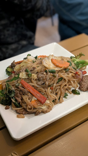 We ordered the Phad Sie Euw with beef, a delicious stir-fried thick rice noodle dish with egg, vegetables, and sweet soy sauce. The texture was wonderfully chewy, and the flavors were spot on! We also tried the Phad Khie Maow with beef, which is fried rice noodles with chili-garlic, vegetables, and basil. Since it had two chili icons on the menu, we expected it to be quite spicy, but it turned out to be milder than expected—still flavorful and really enjoyable.