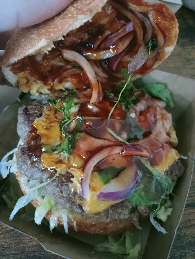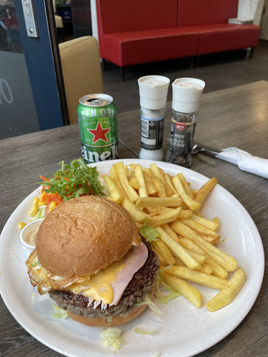 Read moreEen populair adres, want de fietskoeriers lopen in en uit met papieren tassen. Achter de balie een geolied team; geen spoor van stress, ondanks de drukte. Ik neem een "1838", volgens mij de meest uitgebreide burger (met kaas, ham en ei) met patat en salade. Tot mijn verbazing - met die drukte - staat dat in no-time voor mijn neus. Als ik merk dat ik heb vergeten er mayonaise bij te bestellen, reageert de jongen die het eten voor me neerzet bijna alsof het zíj́n fout is! Erg aardig allemaal, dit wordt (tijdens mijn bezoekjes aan Den Haag) een vast adresje. (En het was trouwens...