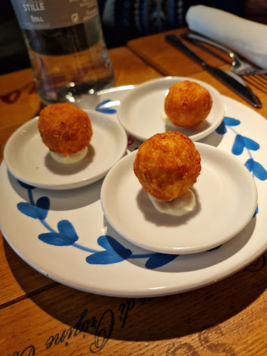 This place is a gem! Authentic Italian cuisine, a beautifully designed interior, a great ambiance, and warm, welcoming staff. The food was absolutely fabulous. As a welcome, we were served arancini balls filled with an artichoke cream—it was to die for. The risotto with Taleggio was another winner, rich and full of flavor, with a surprising tweak of Amarena cherries that created a perfect balance between the Taleggio cheese and the creaminess of the risotto.