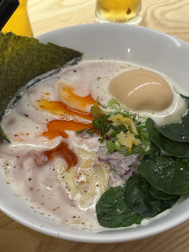 Read moreThe ordering system is very quick and easy. Love that you don’t have to wait for the waiter and can pay immediately. We ordered some side dishes. Gyoza and karaage. The gyoza was indeed homemade, but the content was a bit too watery and thus took away a bit of the flavour. The chicken karaage to my surprise was made with chicken breast instead of dark meat. Also the batter was very light, unlike most Karaage I’m used to. So both side dishes were a bit of a letdown. The ramen is very reminiscent of the tori paitan from Ramen Nikkou in Delft. Exact same toppings, the only difference was the soup and noodles. Noodles were thicker and broth was lighter. Broth was less creamy and the flavour fell off quicker. It is a bit of preference, but I prefer Ramen Nikkou as it is cheaper and deeper in flavour. Overall, a solid bowl and nice people, so...