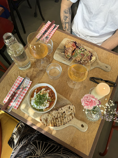 A small and cozy restaurant. Outside is a nice terras along the canal. The wines in this place are all organic wines with the special taste that comes with that. A bottle of water is added yo the table without asking. The dishes are small, they use the shared dining concept. Three dishes is more than enough for one person. The diversity of the choices is good. There are a lot of vegetarian options, beautiful fish dishes and interesting meat choices. The taste is very, very good. The prices are also very friendly for the quality. The food experience is basically very good, almost exciting. It is a place where you want to come back to taste the other items on the menu. But I still saved the best for last. The way you are treated, with a very friendly and caring attitude creates a relaxed ambiance where it is hard to part from. This is a place you immediately wants to be a well know regular (as if a better treatment is possible!?). So I also wants to be back, soon, very soon....