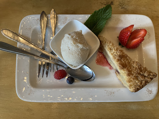 Read moreWhat a rip off! We spent 61⏠for very poor quality and tasteless food. The only things that were decent were the drinks but 12.5⏠for a jug of sparkling water with cranberry sirop is too overpriced. We were very happy when we entered the restaurant because the atmosphere was so nice and the menu looked appealing but were very disappointed when we tasted the food. The aubergine dish: while the portion was generous, the aubergine tasted weird (and I love aubergine) and the other veggies needed more seasoning. The dish of the day was terrible (curry too salty, salad tasteless, no sauce). The forest fruit pie was not a pie and it was very poor in terms of flavor. Sadly, would not...