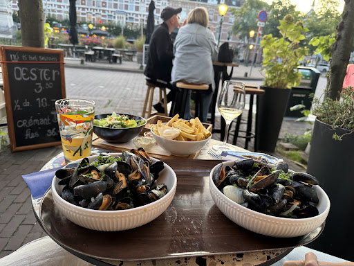 Nice setting and layout of the terras and restaurant. Slightly overpriced for for what at is offering . Reservation was made but none was made available when we arrived . Just pick what is available. Ordered starter and main . We were advised that the kitchen was busy so it may take a bit more time . No problem . After 1.5 hours and everyone around us had been served we were advised that they forgot us . No apologies, no offering of a drink or a snack . I had to insist for some bread that was seen as very generous guesture . It took an additional 20 min for the food arrived but you would expect some extra care would be provided. Total absence . No cutlery , no napkins, no plates . Just two bowls of fine mussels and a salad to eat with your hands . Again no apologies or anything remotely to compensate for the lack of attention and service . Twice the coffee that was ordered was missed . The only thing that worked was a bottle of wine with some ice and one starter. The mussels were fine but nothing specials the enjoyment was overshadowed by the lack of...