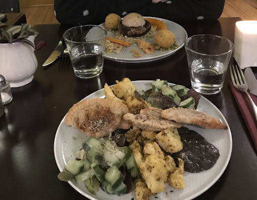 multiple quality vegan dishes relaxed, cosy, calm atmosphere friendly, genuine, spontaneous staff transparency by use of open kitchen delicious, creative/original dishes, with many different elegant flavours on the plate, great use of textures and contrasts between textures staff talks openly about recipe of dessert when asked great chocolate mousse quality alcohol-free beer exactly right portion size; hungry man is very satisfied but not bloated after starter, main and dessert.