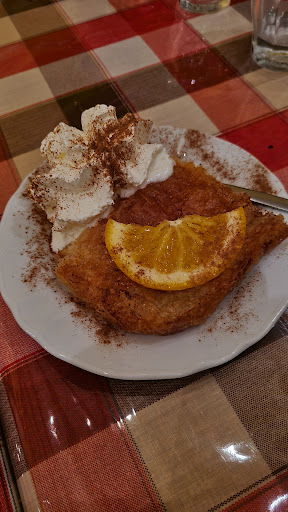 We had dinner as a large group (8 people) at Ouzomezes, and it was a great experience. It's a meze restaurant so they only do bite-sized food to be enjoyed along with Ouzo and they don't have any mains. Thw highlights were the stuffed eggplant (papoutsaki), grilled octopus with fava (htapodi sharas me fava), and pork wine sausage (loukaniko krasato). Octopus was cooked really well, it had a pleasant hint of "char" from the grill and I liked the seasoning. My favorite was the sausage though, the seasoning was, again, on point! They serve pita bread warm, brushed with olive oil and I thought it was a nice touch. To finish off, I had the portokalopita with ice cream. I also tried the galaktoboureko. Both were tasty, the orange cake had so much orange flavor in it, almost rivaling my mother's orange cake. But the galaktoboureko had too much phyllo and not enough custard for my taste.