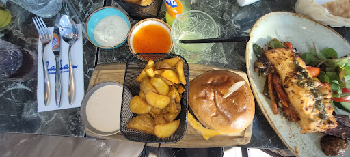 Das Ambiente des Restaurants war angenehm, und wir genossen es, auf der Terrasse zu sitzen. Leider wurde unser Besuch durch das unfreundliche Verhalten der Mitarbeiter getrßbt. Schon von Anfang an wirkten sie gereizt und zeigten uns unangenehme Blicke, wenn wir sie riefen oder etwas fragten. Ihr allgemeiner Umgangston war nicht besonders freundlich, was die Stimmung beeinträchtigte. Glßcklicherweise waren die Toiletten sauber, und auch das Innere des Restaurants machte einen guten Eindruck.