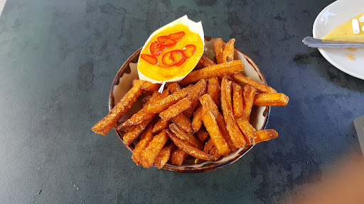 Ā Ā Ā Read moreWe bezochten 'De kas van villa Ockenburgh' op het gelijknamige landgoed zoals het restaurant in de kas naast de villa tegenwoordig heet. Het landgoed gelegen aan de rand van de Haagse wijk 'Loosduinen' is een genot om te wandelen. De villa welke nog gerestaureerd wordt door vrijwilligers is nog niet gereed. Wel liggen de moestuinen er prachtig bij. Het 'kasrestaurant' heeft een kaart met leuke moderne gerechten. Daarnaast is er ook een krijtbord met dagspecials. Zeker op zonnige weekenddagen is het gezellig druk. Maar het terras heeft een oppervlakte om voldoende afstand te houden. We bestelde een kleine Stellendamse garnalensalade van de kaart en een meloen feta salade van het krijtbord. Beide waren erg lekker en mooi opgemaakt met cress en eetbare bloemen. Vooral de garnalen salade was rijkelijk gevuld en erg lekker. Daarna viel ons op de kaart de zoete aardappelfrieten met pittige mangosaus op. Toen we deze bestelde kwamen ze met mayonaise omdat we dat niet accepteerden werd er toch nog de mangosaus gemaakt. Maar ook dit was een lekker en leuk gerecht. Een minpunt was wel het lange wachten 20 minuten op een frisdrank en 30 minuten op een gerecht en dat 2x. De bediening heeft ook niet echt zichtbaar een 'wijk'. Ze lopen kriskras over het grote terras. Kijk het was lekker weer en we zaten heerlijk onder de parasol, dus veel te klagen hadden we niet. Maar het is toch jammer. Het heeft echt wel potentie, maar iemand moet het personeel goed aansturen. We genoten van de mooi aangelegde moestuinen en bloemenpracht waar ook de bijen en hommels heel...