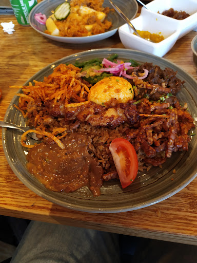Read moreWe kwamen op een 'rustige' dag. Je hebt weinig plek om te zitten en eten daar. We werden verwezen om naast het restaurant te eten, dan moesten we afhalen. Dit hebben wij gedaan. Het scherm om te bestellen was uit. We moesten 10 min. wachten voordat we konden bestellen. Vervolgens hebben we driekwartier gewacht, als het niet langer was. Inmiddels was het restaurant bijna leeg, dus gingen we weer in het restaurant zitten. Helaas waren de plekken erg krap. Een ander nadeel is dat het restaurant na een bepaalde tijd (19.00/19.30) geen bestellingen meer aanneemt. Het eten was goed en netjes verpakt (dat mag ook wel na drie kwartier). Het eten was wel lekker. Mij is verteld dat alle vegetarische opties tevens veganistisch zijn. Het waren ook best...