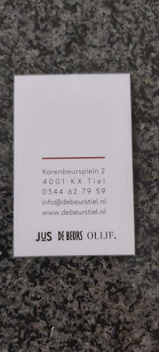 Read moreDe Beurs is Tiel is een Brand Proeflokaal. Naast het Brand assortiment heeft deze kroeg een aantal interessante andere bieren. De bediening is gastvrij. De kroeg vormt in feite met de naastgelegen restaurants Jus en Olijf één bedrijf. Het personeel van de verschillende bedrijven dragen aparte T-shirts maar lopen van het ene naar het andere bedrijf als dat nodig is. Zo kun je de bieren van De Beurs bestellen als je aan het eten bent bij De Beurs. Het eten bij restaurant Jus is van zeer goede kwaliteit. Bovengemiddeld zelfs. Zeker als je dat afzet tegen de prijs. Voor € 25 heb je een 3-gangenmenu. Geen wonder dat dit restaurant populair is bij de plaatselijke bevolking dat netjes gekleed komt eten. Een beetje jammer dat sommige dames net wat te veel eau de toilette gebruiken, dat komt de smaakbeleving...