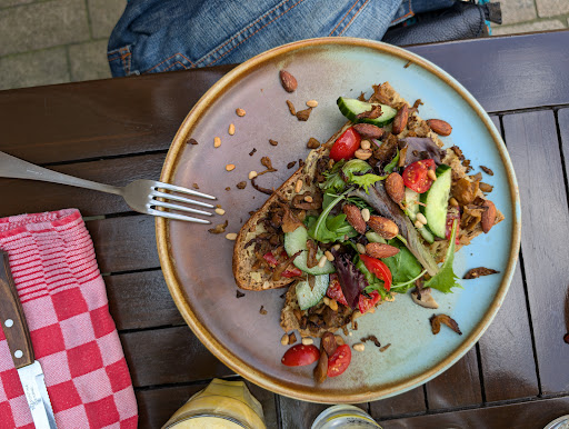 Read moreDe burgerij is een naam die in Tilburg steeds vaker genoemd wordt als leuk lunch adresje. In eerste plaats bekend vanwege de delicatesse zaak maar nu ook als brasserie aan de weg timmerend. We vonden het leuk om hier eens op zondag middag een hapje te gaan eten. Het terras aan de straat zijde ligt al in de schaduw. Bij binnen komst even wachten tot er iemand van de bediening komt. We mochten een tafeltje kiezen. Dit werd er een in de serre. Binnen is het gezellig ingericht, sfeertje dat doet denken aan een bruin café. We wilde graag de wijnkaart zien, deze was verrassend uitgebreid met veel wijnen per glas, prima. De Pinot Noir, die licht gekoeld lag, werd door de jonge dame geadviseerd. Deze paste het best bij de charcuterie plankjes, de specialiteit van het huis. We vonden het een goed idee.