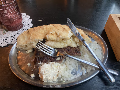 Since I have Balkan roots, I was super excited to eat some traditional food. Me and my boyfriend ordered around 7pm, 10 Äevapi and 1 pljeskavica, with extra kajmak and rice and cabbage salad. We have waited until 7:45 , then we just politely asked if they didnât forgot us, they said no, and we forgot to tell we canât give you Äevapi we arranged one pljeskavica instead. We asked if we can order something else they said no, they have nothing else, although they have many other things on the menu. Anyway we waited so long and weâre hungry so we didnât bother. And then around 8pm, they brought us the food. The bread was wet, and sticky. My pljeskavica was burned underneath, my boyfriendâs pljeskavica was raw inside. Kajmak that we paid extra for was not kajmak but just paturan. We lost our appetite and asked for the bill. No one from the stuff bothered to ask us why we didnât eat. No one asked if everything was ok. They brought the bill, and I said can you pack the meat for my cats? The waitress just said ok. She put it in some aluminum bowl and didnât had a bag. She said sorry I donât have a bag, thanks for visit and come again. Also, I had an open cookie with my tea served. I never felt more disappointed, we left hungry and paid the full amount of really bad service. I donât recommend this place at all. And for sure we are not going to...