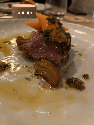 Read moreLeuk ontvangen door een jongedame, we zien op de menukaart zoveel, dat we zeggen doe maar 6 gangen, dan hoeven we zelf niet te kiezen. Bij het bestellen van 4 oesters bestellen we 1 gewone me de vermelding dat 1 persoon niet tegen pittig eten kan, wat schets onze verbazing bij de1ste gang zit er de pittige dressing van de oesters bij. Jammer, maar nog maar een keer gemeld, er werd gezegd pittig is alleen nog bij het hoofdgerecht maar daar houden we rekening mee, nou nee dus want gang 3 was ook pittig, wat van gezegd, kregen we als opmerking ,dat is vantevoren allemaal van tevorenl bereid? En bij het hoofdgerecht was ook de pittige chutney nog aanwezig. Erg jammer, en wat we ook er storend vonden was de kakofonie van geluid, we moesten naar mekaar hard roepend wat vertellen en we hadden het idee, dat we in een eetcafé zaten,waar meer gedronken word als gegeten. De blonde ober vonden we ook totaal niet gastvrij, borden werden nog net niet op tafel gesmeten, en toen hij te horen kreeg,dat we niet voor een 2de fles wijn gingen was zijn service helemaal over. Eten was lekker, maar je gaat voor een avondje totale belevenis, en die was voor ons ver te zoeken, we hadden gewoon schore kelen, van het harde praten Naar het afrekenen, konden we zelf op zoek naar onze jas! Nee dit was niet wat wij voor ogen...