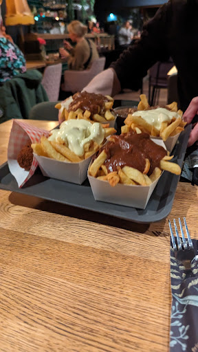 Perron 3 heet het, leuk bedacht ook, het versfriethuys ligt tegenover het station waar maar twee perrons zijn. Alleen dat is al 1 ster waard voor de originaliteitsprijs om die naam te verzinnen. Het doet wat het moet doen, de klant voorzien van een heerlijk drankje of iets te eten. Je kunt er heerlijk buiten zitten, ik was er toen de zon scheen en 20 graden was. Buiten is genoeg plek aan een tafeltje met stoelen of grote tafels met banken. Er zijn voor de stoeltjes een soort van kussentjes/ vachten, slim bedacht. Buiten op het terras is er beschutting, ik weet niet hoe het is als er een orkaan is, maar met wat wind zit je beschut. Ook honden zijn toegestaan op het terras, er is zelfs water voor de honden, ook een extra ster erbij. Er valt buiten genoeg te zien, er rijdt regelmatig een trein voorbij, waar je overigens totaal geen last van hebt. Het personeel is aardig en behulpzaam, afrekenen kan met de pin en contant. Het eten, is heerlijk, neem vooral de friet stoofvlees, verschrikkelijk lekker. Ook zijn er ijs en smoothies, soep, allerlei burgers, vlees en vis, ook kindermenu's en zelfs glutenvrij. Parkeren kan er ook, gratis, waar maak je dat nog mee, ook weer een ster. Kortom, 5 sterren van mij, niks meer...