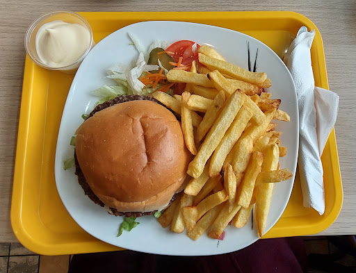 I ordered fries with hamburger and coffee. I payed around 11€ which is similar price to Macdonald. The owner didn't speak English and he called for a younger guy which did. Atmosphere with this older guy was ankward. He avoided to look straight at me which was weird. Older woman was nice, young guy also. Food... Bun very soft, almost fluffy, I didn't feel I ate it. Meat tasted like the cheapest from the market. So hamburger I wouldn't reccomend. Fries crunchy, we'll fried and big portion. I liked it. Coffee was JUST coffee. No cappuccino or other standard options. Only the one coffee the easiest to choose from. It surprise me. And very small. Overall...I won't go there again. I was desperate because I was cold and hungry XD For similar price I have A LOT Better food from Macdonald. Multiple options, everything tasty and good quality. Hard to not compare standards of...