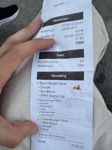 Bovendien was ik verbaasd te ontdekken dat er een extra bedrag van €2,- in rekening werd gebracht voor de sauzen, die als "niet zo Waw" werden beschreven op uw menu. Dit was zowel misleidend als onrechtvaardig, vooral omdat de kwaliteit van zowel het eten als de sauzen ver onder mijn verwachtingen bleef.