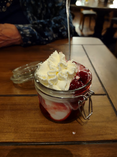Read moreNorsig personeel (vriendelijkheid, interesse en gastvrijheid kosten niets!), matige service (waarom niet even een paar servetjes bij de de hamburgers?), lange wachttijd terwijl het verre van druk was, zeer matig eten (half verbrande hamburger, slappe lauwe friet, karig bakje mayonaise). Ronduit slechte prijs-kwaliteitverhouding. Toiletten: gedateerd, niet blinkend schoon, maar ze roken redelijk fris. In de categorie 'teken aan de wand': de zeepdispenser was gebarsten en defect, maar hing nog wel aan de muur. Haal dat ding dan weg... De overleden dispenser was vervangen door een groezelig pompje met daarin een laagje zeep-achtige substantie dat aangelengd bleek met water. Je zou toch verwachten dat een horecagelegenheid als deze sinds alle corona-ellende geen gelegenheid onbenut laat om zich van haar meest hygiënische kant te laten zien. Voordat het een al te zwartgallig verhaal wordt nog een paar pluspunten: groot terras met voldoende ruimte voor fietsen, een levendige ligging aan een doorgaande weg en als enige in het dorp...