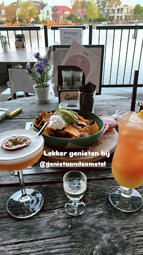 Als tip voor de eigenaar van Genieten aan de Amstel zou ik ook graag de volgende dingen willen mededelen: stuur je personeel beter aan en train ze beter. Daarnaast leer ze om beleefter te zijn. Verlicht de tafels en de ruimte daarnaast egaler. Zoek een nieuw persoon voor je logos en digitale medium. Je logo bevat stijl fouten (letters bevatten rare margins, voornamelijk de "I"). Je website is te simpel en te traag. Als laatste: probeer minimaal op iedere Google review te reageren met "We hebben uw mening aangehoord en zullen actie ondernemen ... Pas uw waardering voor nu positief...