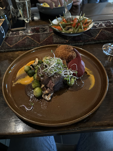 Decent place to have a meal. Service is alright, as we had few different waiters the enthusiasm varied. Food is of decent quality. Not outstanding quality, portion size is not too large. Pork tenderloin was dry and had been sitting on the warming tray for way too long i imagine. Fish was decent but portion was not too large. Desserts are average, i was not impressed. Creme brulee was not like it should be at all. All the meals feel prepared-en-mass and well in advance, only to be heated up before serving out. Drinks are expensive. There is a restaurant 2 doors further serving them 2/3rd of the price. Setting is alright. For a place like this i was expecting more authentic decor, heavy wood beams and a large fireplace etc.
