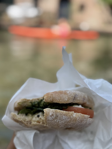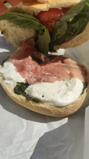 Excellent Italian breads freshly made. The store is a true Italian boutique, with many types of meat, wines, and a lot of other deliciousness. Besides the regular menu, which is always already quite amazing, they also always have a "bread of the day" which is often interesting and tasty. Do note that you cannot eat pastas or pizzas here, but that its just for breads with cold cuts and such. The added pic is a prosciutto with mozarella and pesto sandwich. This is one of the more basic ones, but is extrememly tasty...