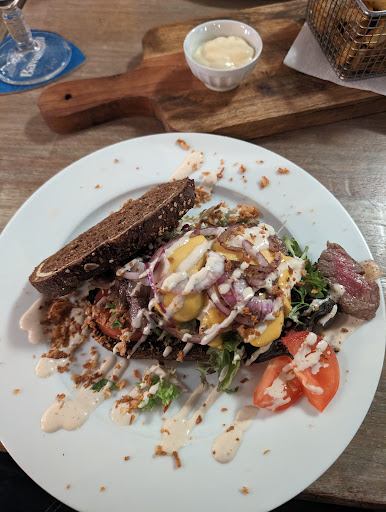 Read moreNa veel goede reviews een hapje wezen eten. Restaurant heeft een leuke uitstraling. Er was verder niemand binnen met eten. De serveerder was een hele vriendelijke man. Dit beloofd wat. Hoofdgerecht was een schnitzel. Deze viel een beetje tegen. Smaakte niet naar een schnitzel en was erg droog. De tomatensoep was lekker. Brood met kruidenboter ook. In de tussentijd liep er een bijzonder amicaal persoon rond het in cafe/restaurant. Blijkbaar een kennis. Daarna kwam er een blonde dame bij hem zitten en uiteindelijk resulteerde dat in soort van heftig muurknuffelen. Note, dit was rond 18.00 uur. Er werd geschreeuwd en gepraat en wij kregen ook de blik van de madame. Niet echt uitnodigend om met je kinderen te gaan eten "bij je ouders thuis". De lading vriendenclub die ook binnen was gekomen ging op het terras zitten vol aan het bier en roken. We hebben betaald en zijn ergens anders een toetje gaan eten.