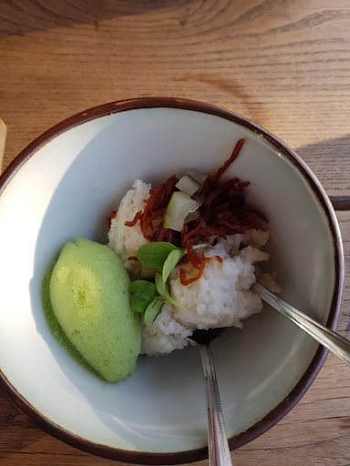 Just had dinner here tonight with a friend. I asked the waitress what she would recommend and eventually she recommended "their most exciting dish" which was their 'Eggplant Schnitzel', she described it as a true surprise. Unfortunately, when it got served I was very disappointed as this "most exciting vegan Eggplant Schnitzel" was just a big slice of eggplant tempura. Not so exciting, nor were the flavours as they were just very bland. I asked for some salt, but never got it. I wanted to give the 'Rice pudding with cucumber sorbet' dessert a try and shared it with my friend. The sorbet was quite nice, but the rice pudding wasn't a pudding at all. It was just bland sticky to dry rice without any flavour, NOT a pudding. The presentation and the way the entire thing tasted was like a weird dry Poke Bowl with just rice and some sorbet on the side. I thought it was just me after the disaster main course, but my friend said the same thing. I've tried to eat here with other people before which wasn't great at that time either. And I hoped over time that things would have changed a bit and the food got better. Unfortunately this was not the case. I wont try to come...