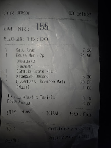 Highlight of the things we ordered was the babi pangang China dragon, we really liked that. The shrimp with mushrooms sauce I didn't like that much, and overal the quality was pretty good compared to other Chinese restaurants I've visited. (And as usual the portions are huge)