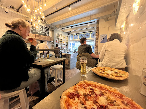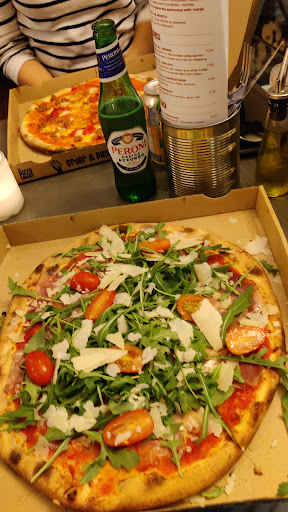 The name does not suggest authenticity and I found the pizza to be that, the dough reminded me the most of pizza al taglio (square pizza that you can usually choose the size of in italian bakeries,a slice) or perhaps flamkuchen. But this kind of pizza is quite far from neapolitan pizza with it's soft and thin dough. The douch was very thin but also rather crunchy, this combination wasn't particularly successful in my opinion and in together with moderate toppings and high prices means that I don't recommend this place and will not return since there's much better for lower prices...
