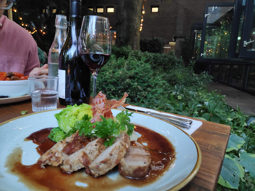 Read moreThe garden of the restaurant is really amazing. Great atmosphere! The food started off as average, the poached salmon was served with an enormous amount of mayonnaise which made the flavour quite bland. The lobster croquettes were a better starter. When the main dishes arrived I was very pleased however, I felt like these were more traditional dishes which both tasted really good, finally the dessert was also nice. I did feel like the staff could use some extra training or experience, they where a bit all over the place, and we had to remind them about things several times. They were clearly trying though and friendly so perhaps due to corona closure, if some time passes it'll improve. Finally I was just somewhat disappointed with the wine, especially the fact that we got a bottle with a screw top rather then with a cork was not particularly french to me. All in all I think there's room for improvement but I would recommend and will likely return.