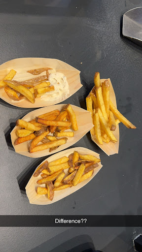 The fries are subpar and there is no attention to detail. For example, after cutting the potato, everything is thrown into the fryer, rather than first removing the parts that are too small. Those small parts burn faster, which gives a burn that both degrades the fat, as well as gives a burnt flavor (and smell, as one notices when being inside).